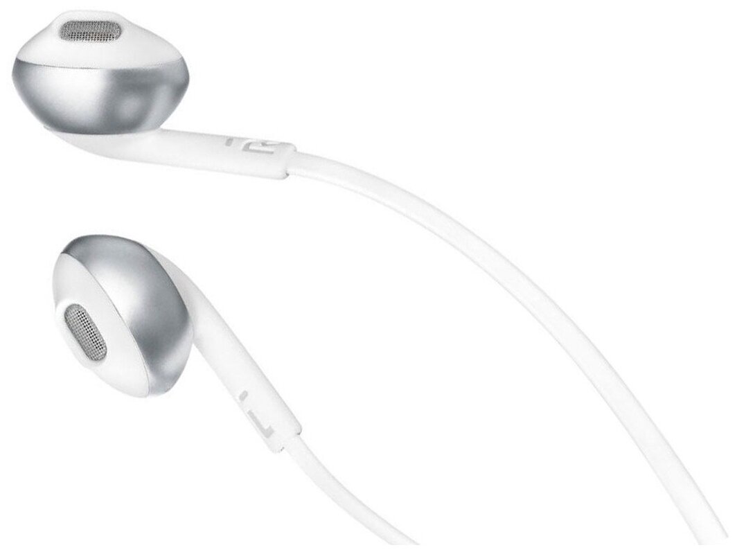 10 цен на Наушники проводные с микрофоном JBL T205, проводная гарнитура, white silver