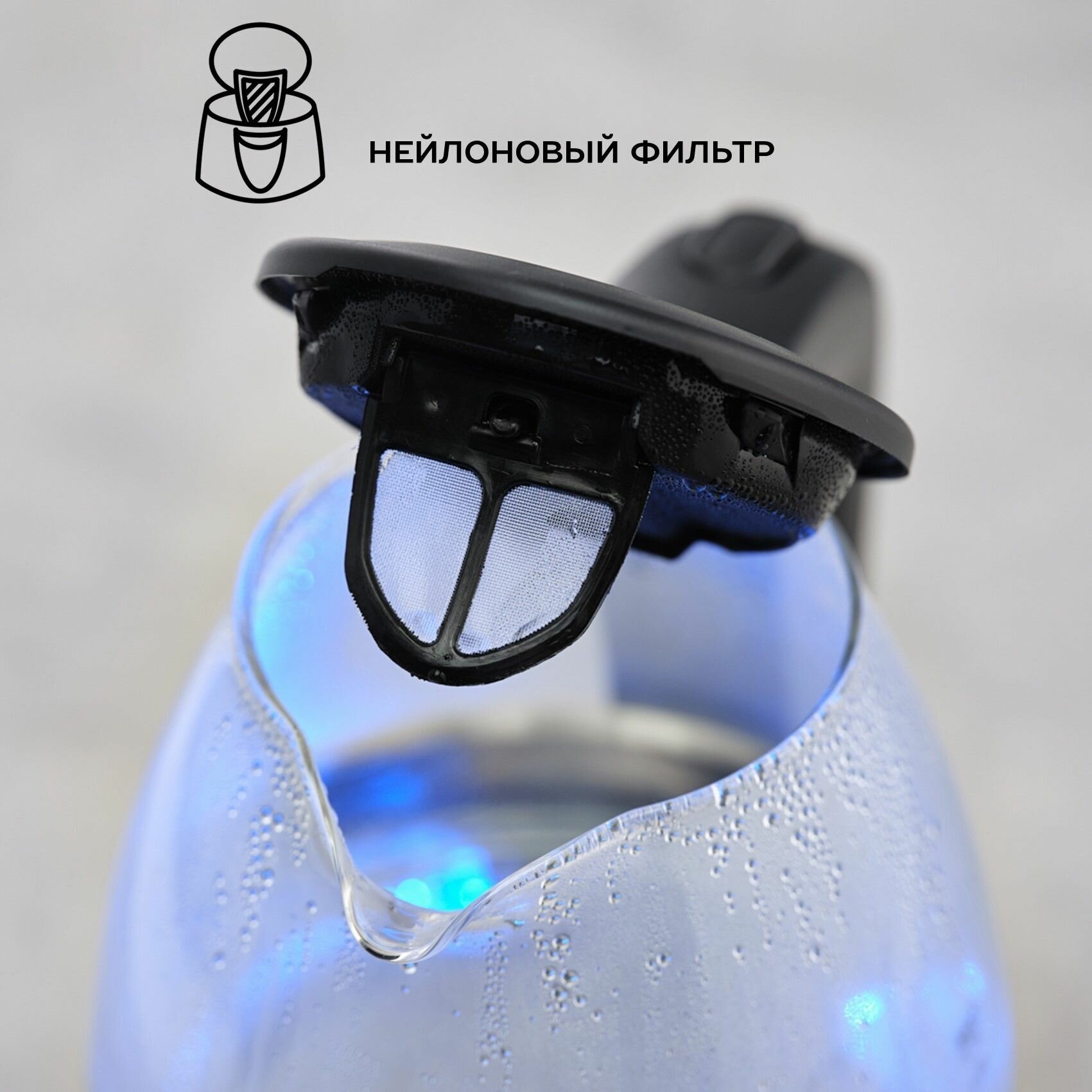 Чайник электрический стеклянный LEX LXK 30010-1, объем 1,2 л, подсветка.
