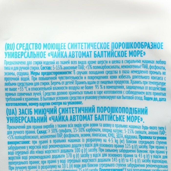 Стиральный порошок универсальный автомат Чайка Балтийское море, 400 гр.
