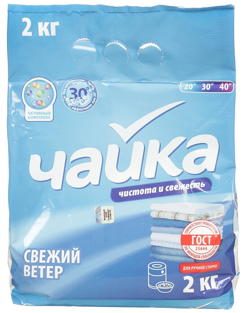Порошок стиральный Чайка для любого вида белья аромат свежий ветер ручная стирка 2кг / моющее средство информация: