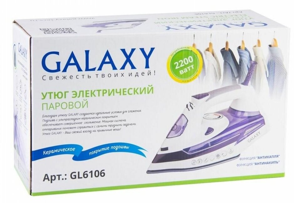Отзывы на Утюг Galaxy GL6106, 2200Вт, подошва керамическая, уплотнитель крыжки резервуара