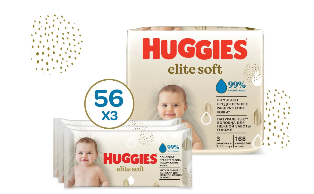 Влажные салфетки Huggies Elite Soft, 168 шт.