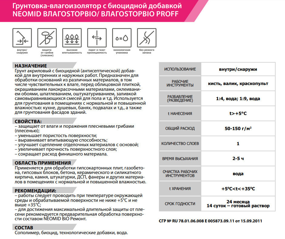 Грунт-влагоизолятор NEOMID ВлагоStop Bio (3 л ) информация: