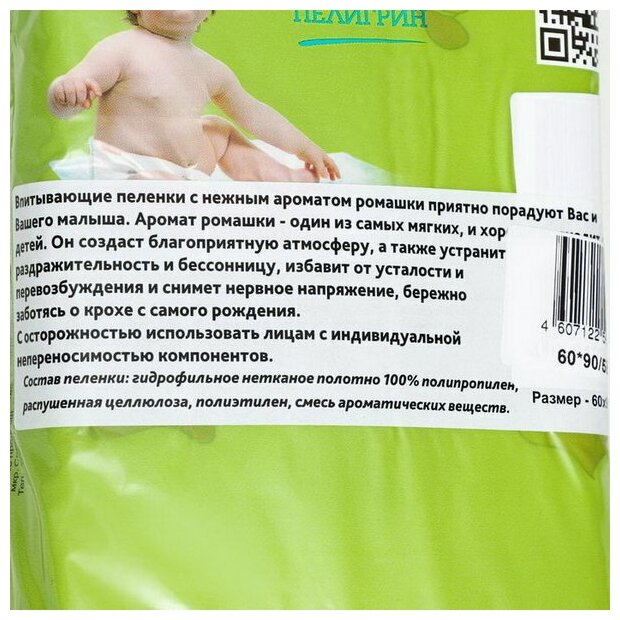 Одноразовая пеленка Пелигрин с экстрактом алоэ 60х90, 5 шт. информация: