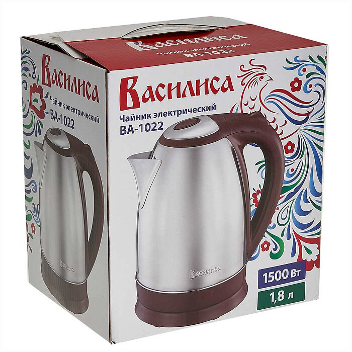 Чайник электрический василиса ВА-1022 нержавейка/коричневый 1,8л