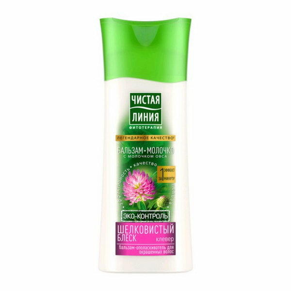 Чистая линия бальзам-ополаскиватель Шелковистый блеск для окрашенных волос Клевер, 230 мл