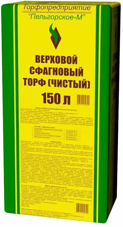 Торф верховой сфагновый Пельгорское-М 3,0-4,0 pH 150 л информация: