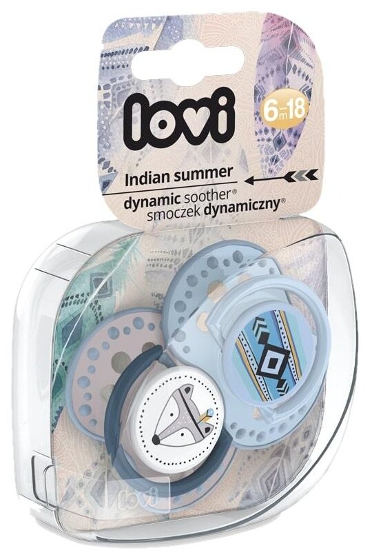 Пустышка Lovi Indian Summer динамическая силиконовая 6-18+ мес., 2 шт., голубой информация: