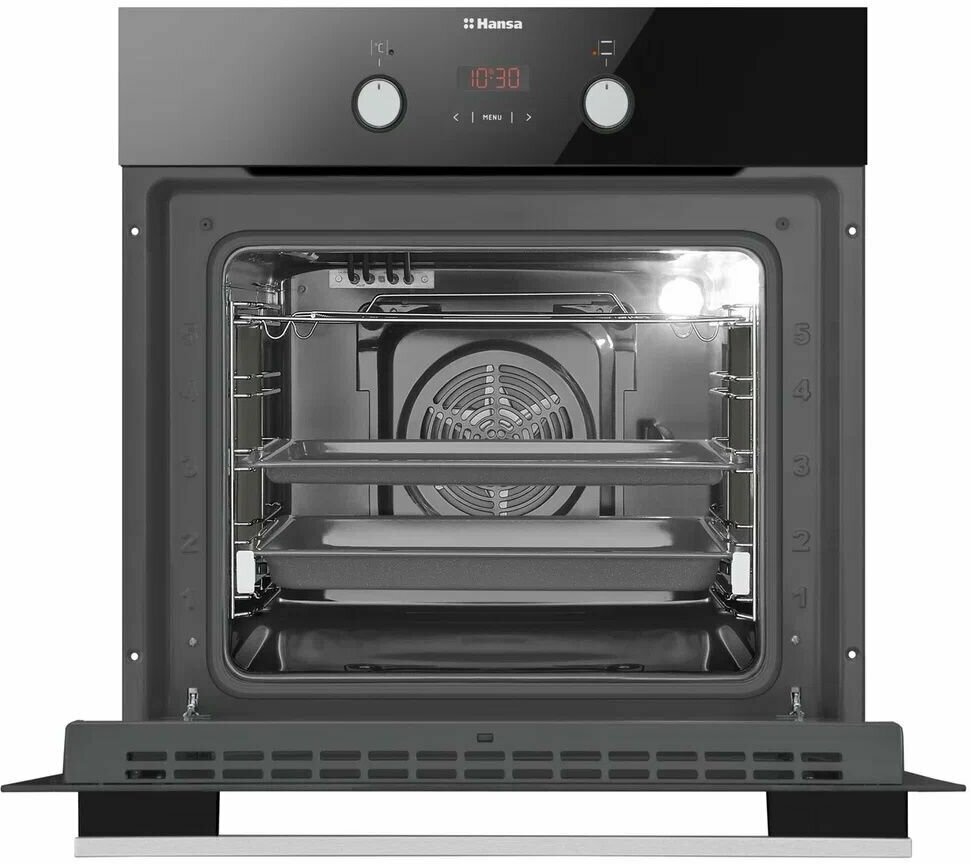 Электрический духовой шкаф Hansa встраиваемый BOES68427, 60см, с грилем и улучшенной конвекцией, с быстрым нагревом, с таймером, тройное жаропрочное стекло информация: