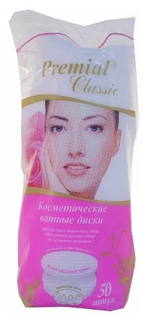 Ватные диски Premial Classic косметические с прошитыми краями, 50 шт., пакет информация: