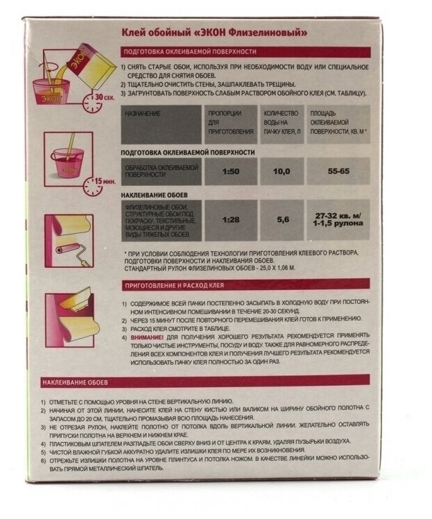 Клей обойный Экон Флизелиновый, 200 г 2077903 информация: