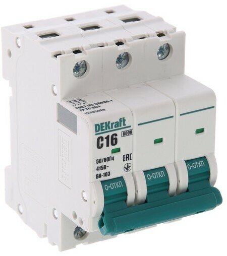 Выключатель автоматический DEKraft ВА-103, 3Р, 50 А, 6 кА, тип С