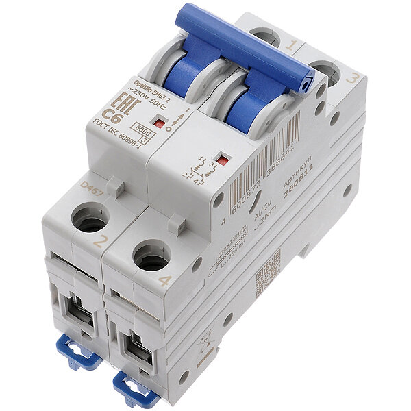Выключатель автоматический модульный 2п C 6А 6кА OptiDin BM63-2C6-УХЛ3 КЭАЗ 260611 информация: