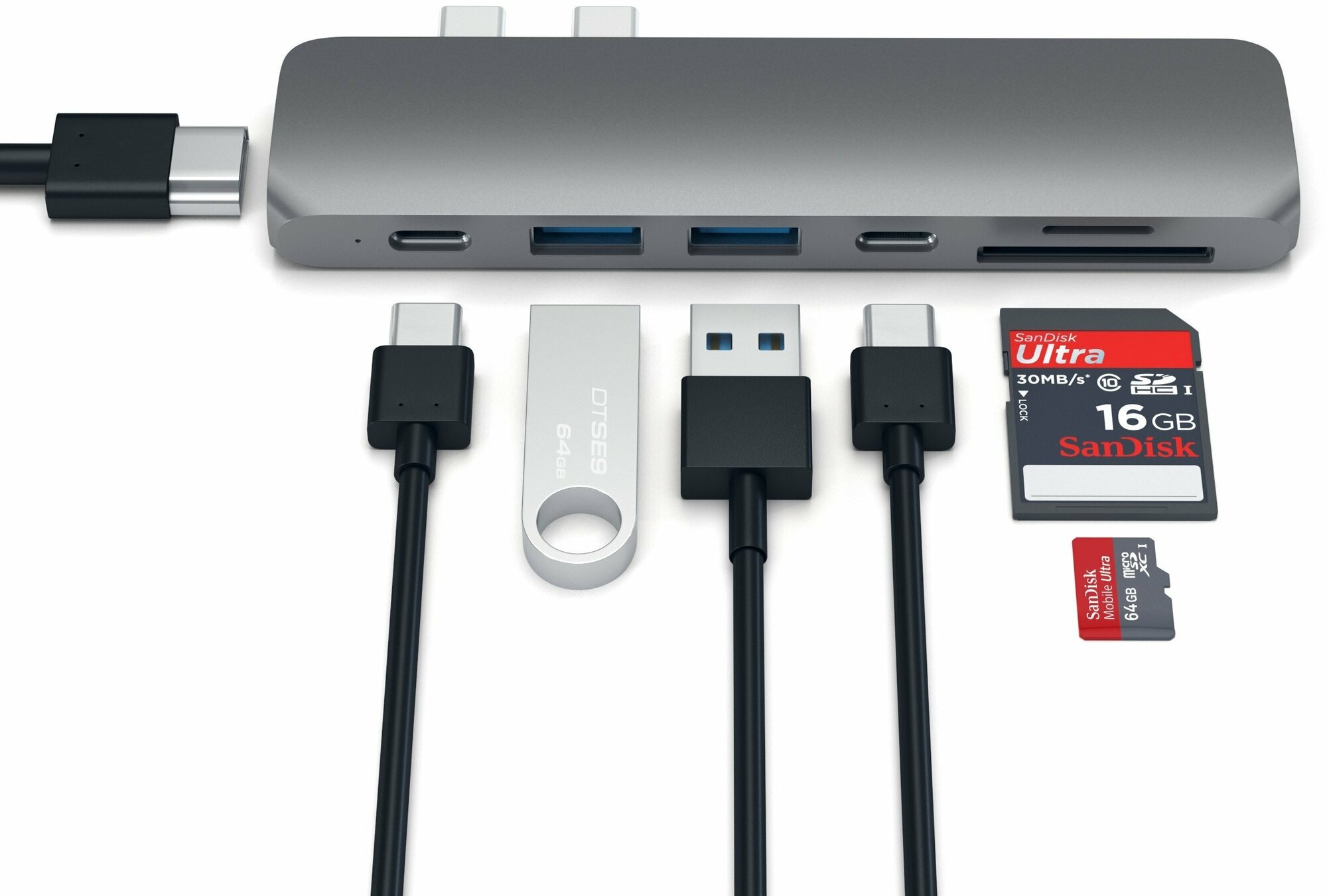 USB-хаб Satechi Aluminum Pro Hub для Macbook Pro (USB-C). Цвет серый космос.