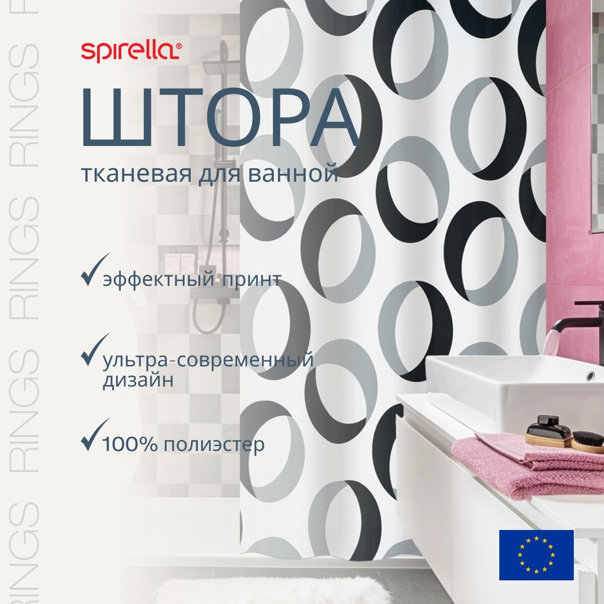 10 цен на Штора для ванной Spirella Rings 180x200 серый/черный