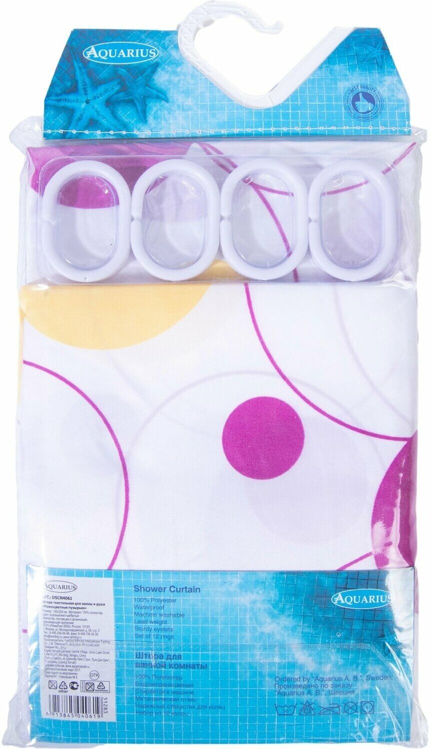 Штора для ванны Aquarius Разноцветные пузырьки 180х200 см розовая информация: