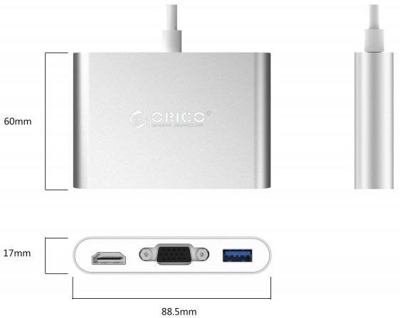 Разветвитель USB Orico Rchv с конвертером Type-C -vga/hdmi (серебристый) .