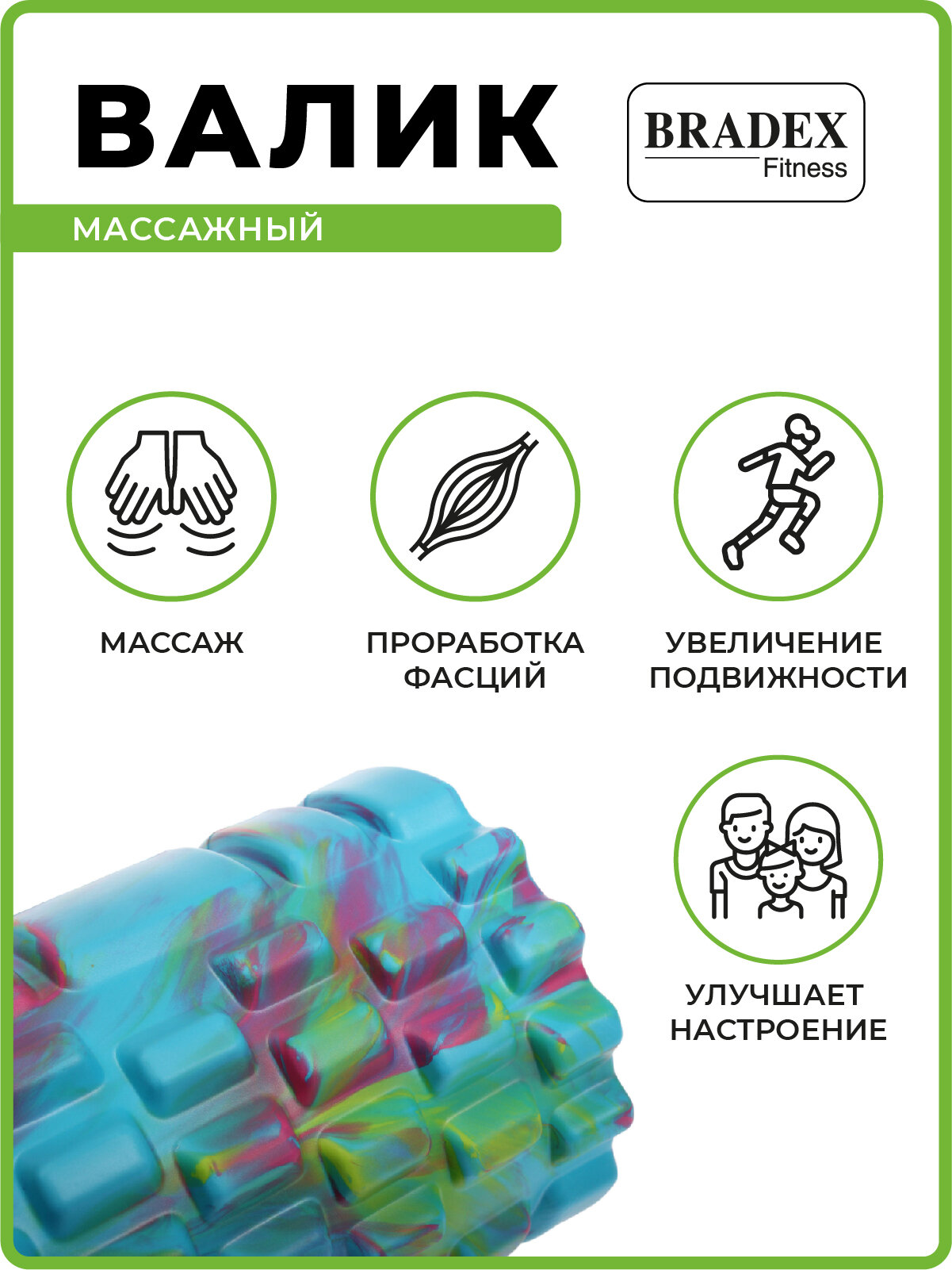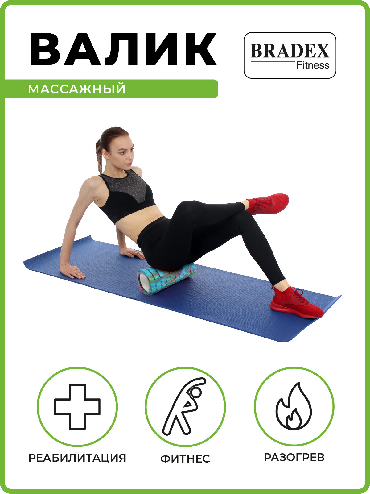 Ролик массажный BRADEX, спортивный валик для фитнеса, средняя жесткость, синий камуфляж информация: