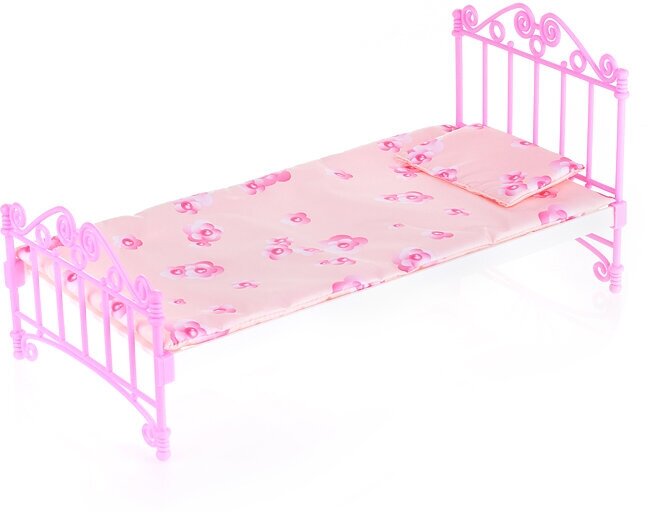 10 цен на Мебель для кукол Огонек Кровать для куклы розовая с постельным бельем (в пакете п/п) 31*16*16см