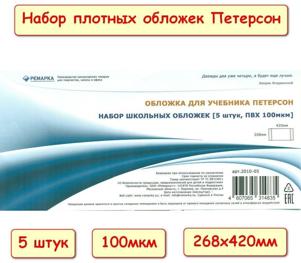Ремарка Обложка для учебника Петерсона-Гейдмана, 5 штук