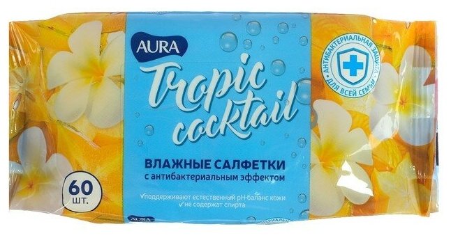 Влажные салфетки Aura Tropic Cocktail c антибактериальным эффектом, 60 шт. информация: