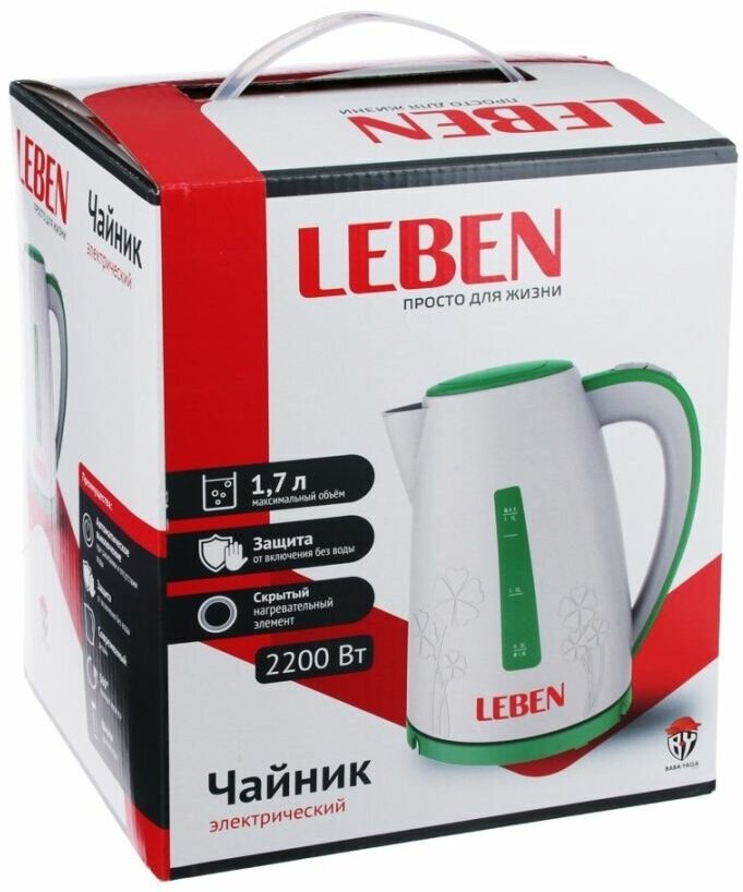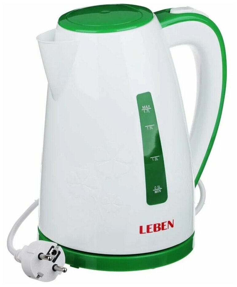 10 цен на Чайник электрический 1,7л, 2200Вт, пластик, белый с зеленым, с рисунком