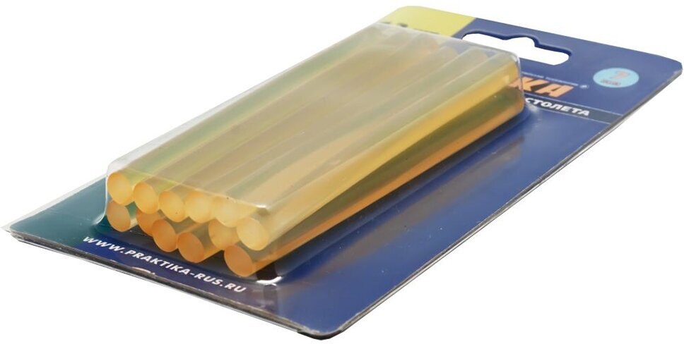Клей для клеевого пистолета ПРАКТИКА желтый, прозрачный, 7 х 100 мм, 12шт / блистер