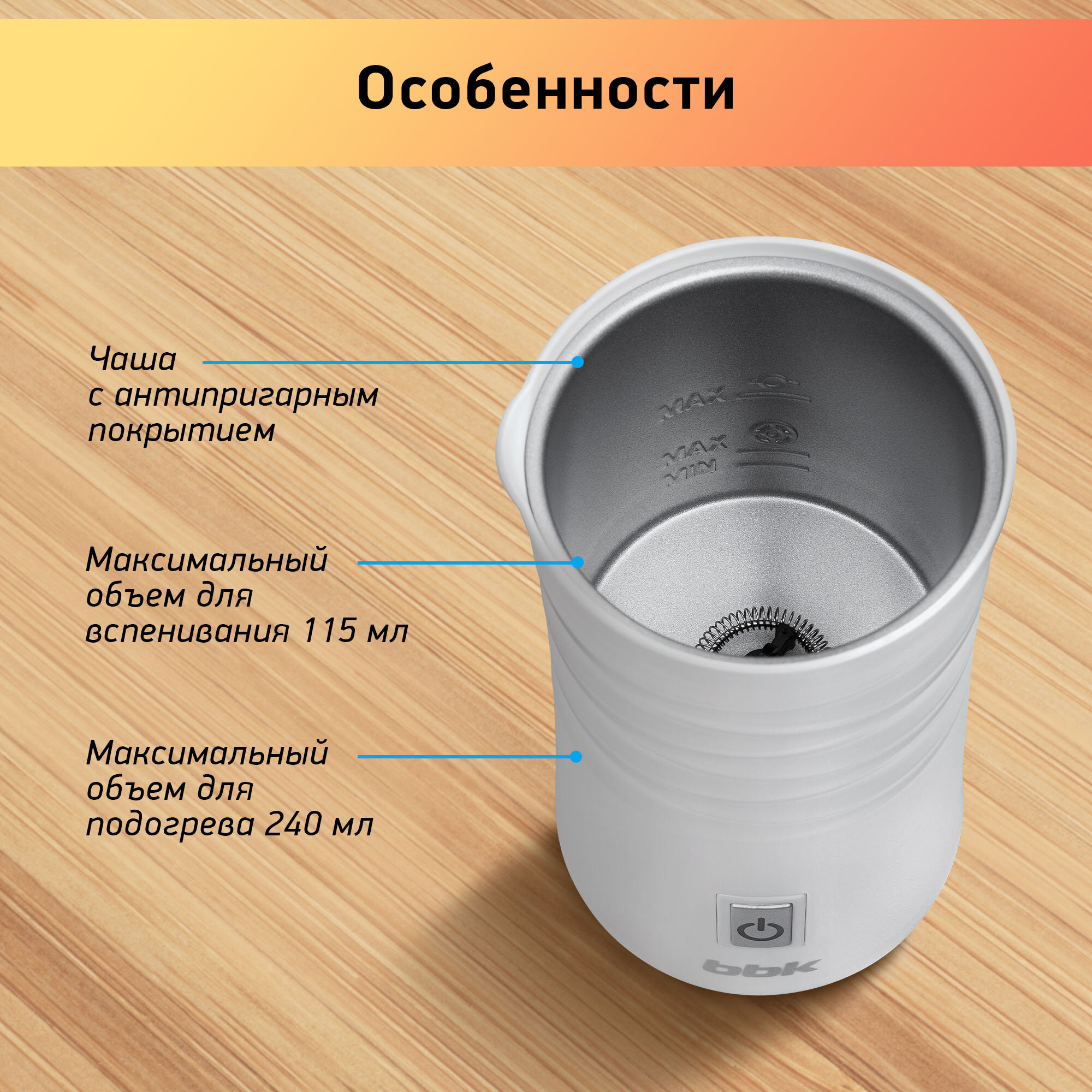 Вспениватель-капучинатор 0,35мл BBK, арт. BMF025, белый, 500Вт информация: