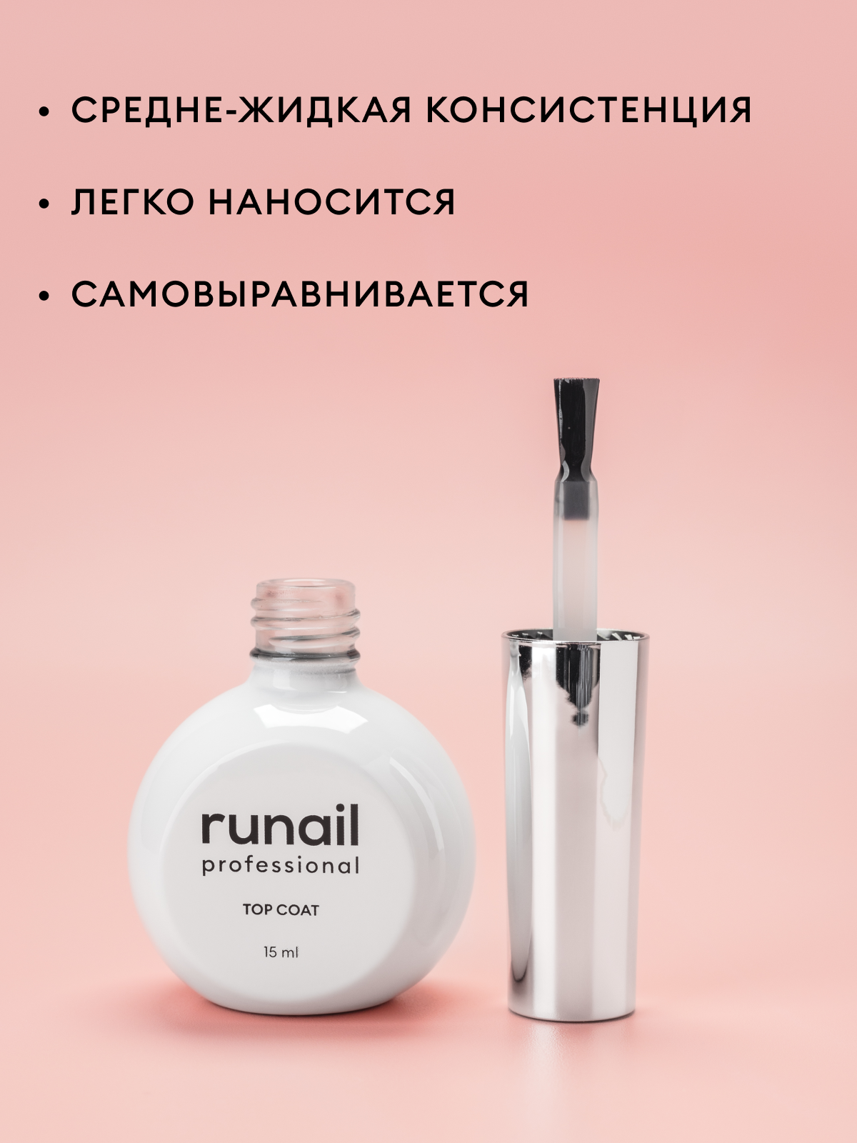 RuNail, Top Сoat - глянцевый топ для гель-лака (без липкого слоя), 15 мл