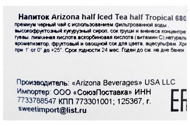 Напиток Аризона Холодный чай Half & Half Tropical, 680 мл, США информация: