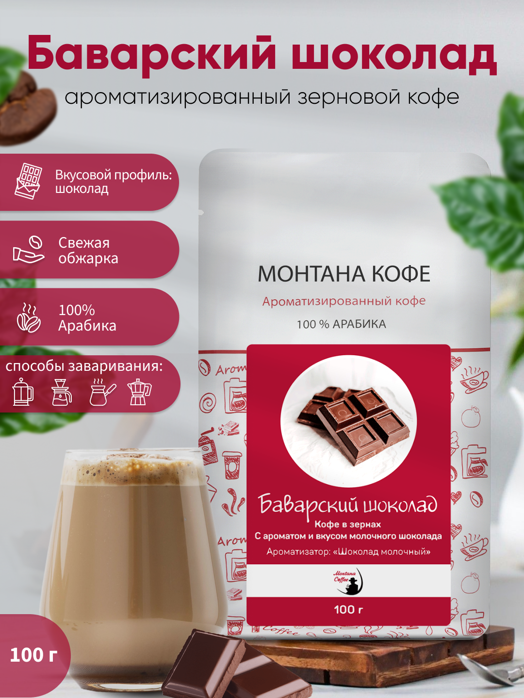 Кофе в зернах Монтана "Баварский шоколад", ароматизированный, 100 гр информация: