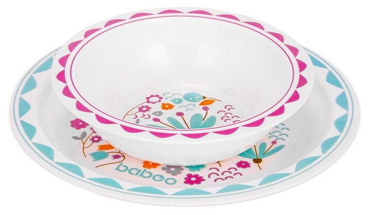 Тарелка baboo Flora (9-018), белый/голубой/розовый информация: