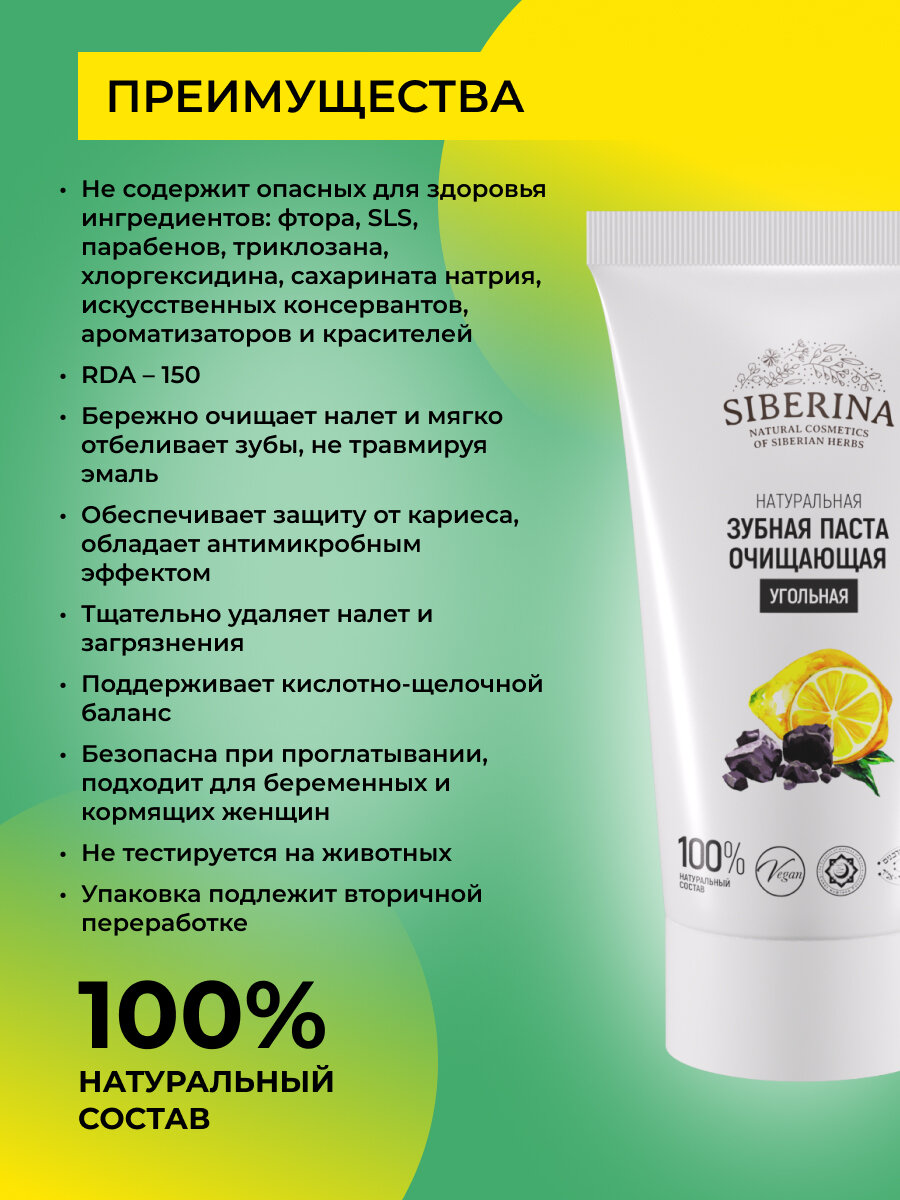 Siberina Натуральная зубная паста очищающая "Угольная" 50 мл информация: