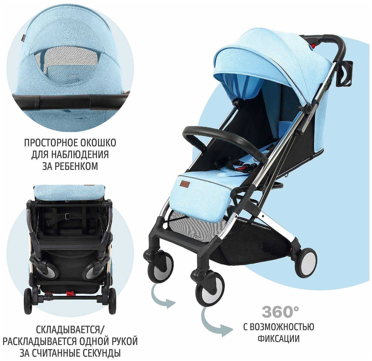 Коляска прогулочная детская Nuovita Anima легкая для путешествий, складная, трансформируется в сумку-тележку (голубой на серебряной раме) информация: