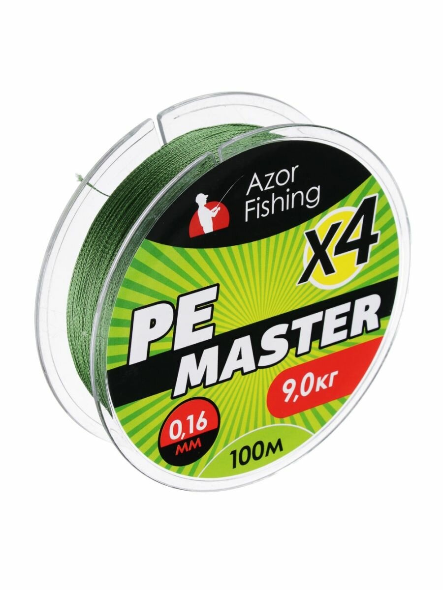 AZOR FISHING Леска плетеная, PE Мастер, 100м, 0, 16мм, 9, 0кг, зеленая