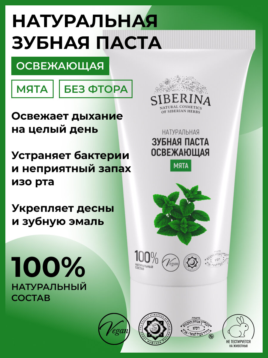 10 цен на Siberina Натуральная зубная паста освежающая "Мята" 50 мл