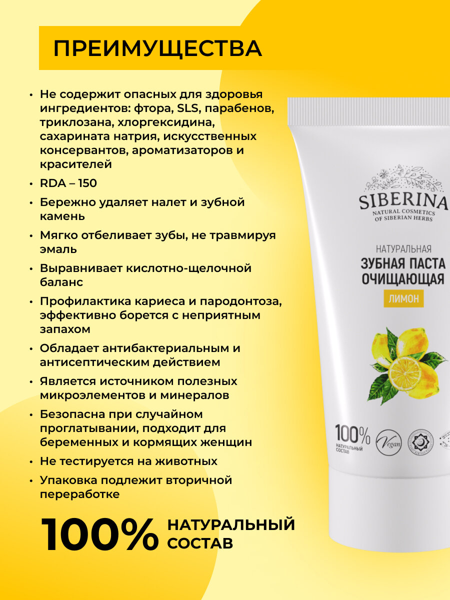 Siberina Натуральная очищающая зубная паста "Лимон" 50 мл информация: