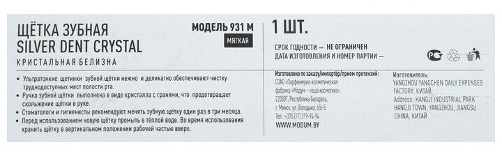 MODUM Щётка зубная silver dent crystal, 931 мягкая информация: