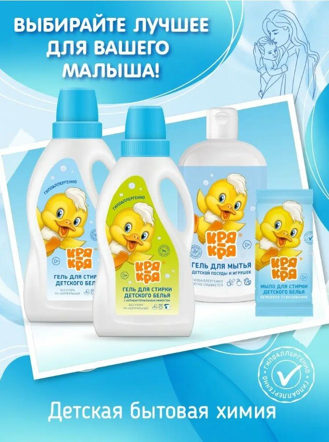 Гель для стирки Кря-кря для стирки детского белья, 1.5 л, 1.5 кг, бутылка информация: