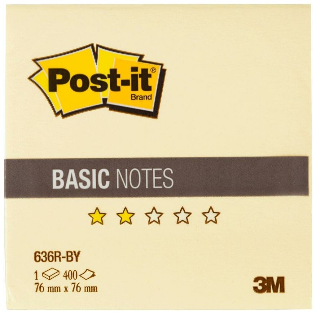 Стикеры (самоклеящийся блок) 3M Post-it Basic, 76x76мм, желтый пастель, 400 листов (636R-BY)