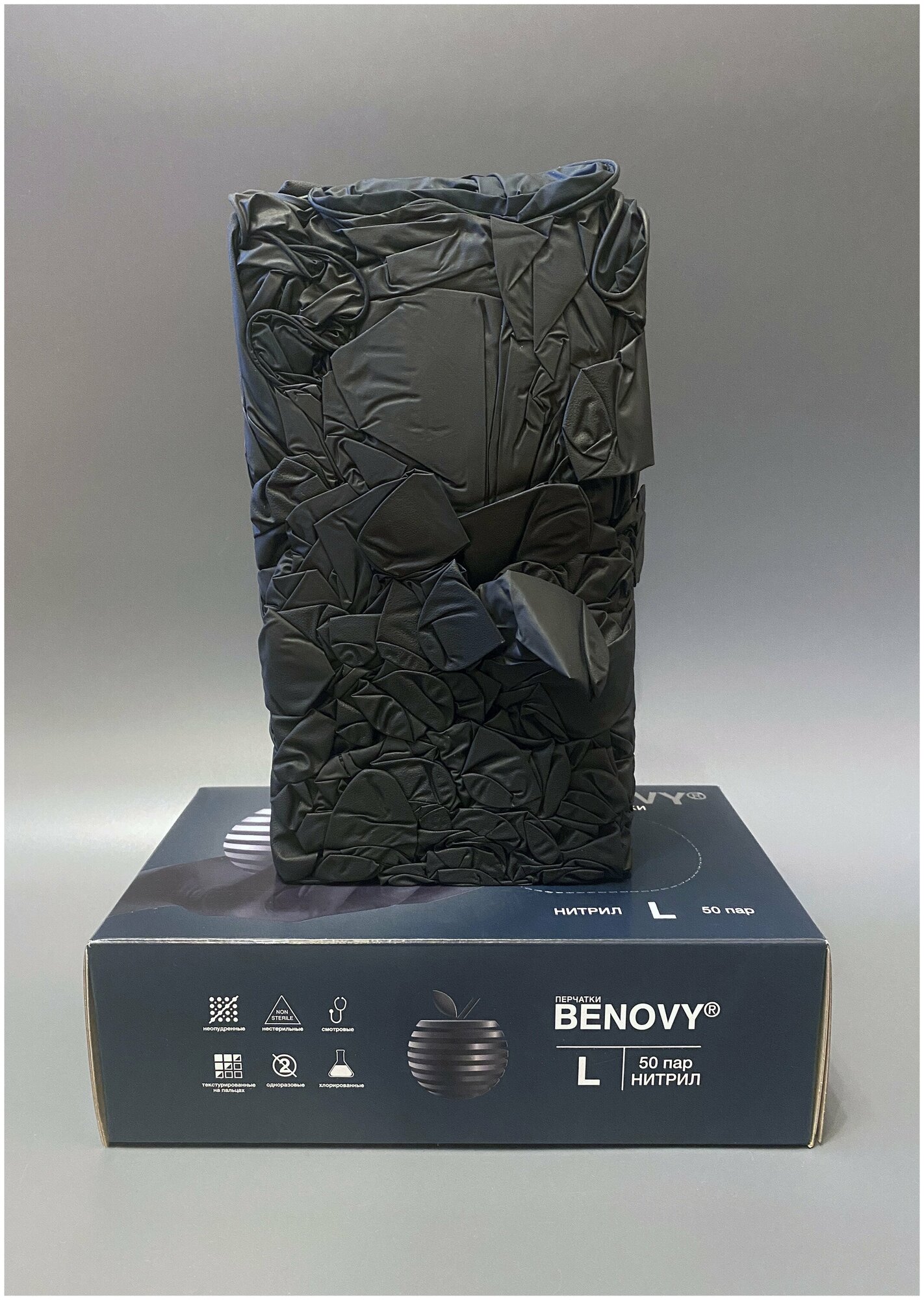 Перчатки нитриловые смотровые комплект 50 пар (100 шт.), размер L (большой), черные, BENOVY Nitrile Chlorinated 911 ₽