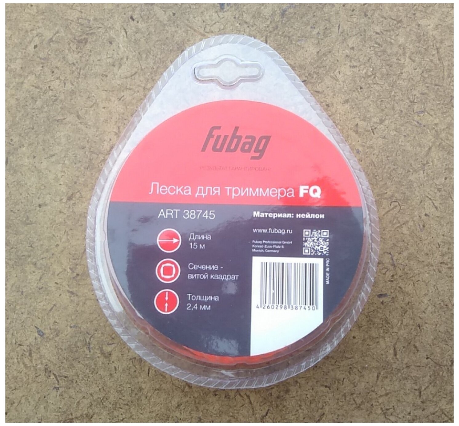 Триммерная леска Fubag FQ 38745, 2.4 мм, 15 м, сечение витой квадрат