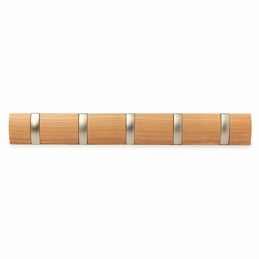 Вешалка Umbra Flip настенная горизонтальная, 5 крючков, натуральное дерево