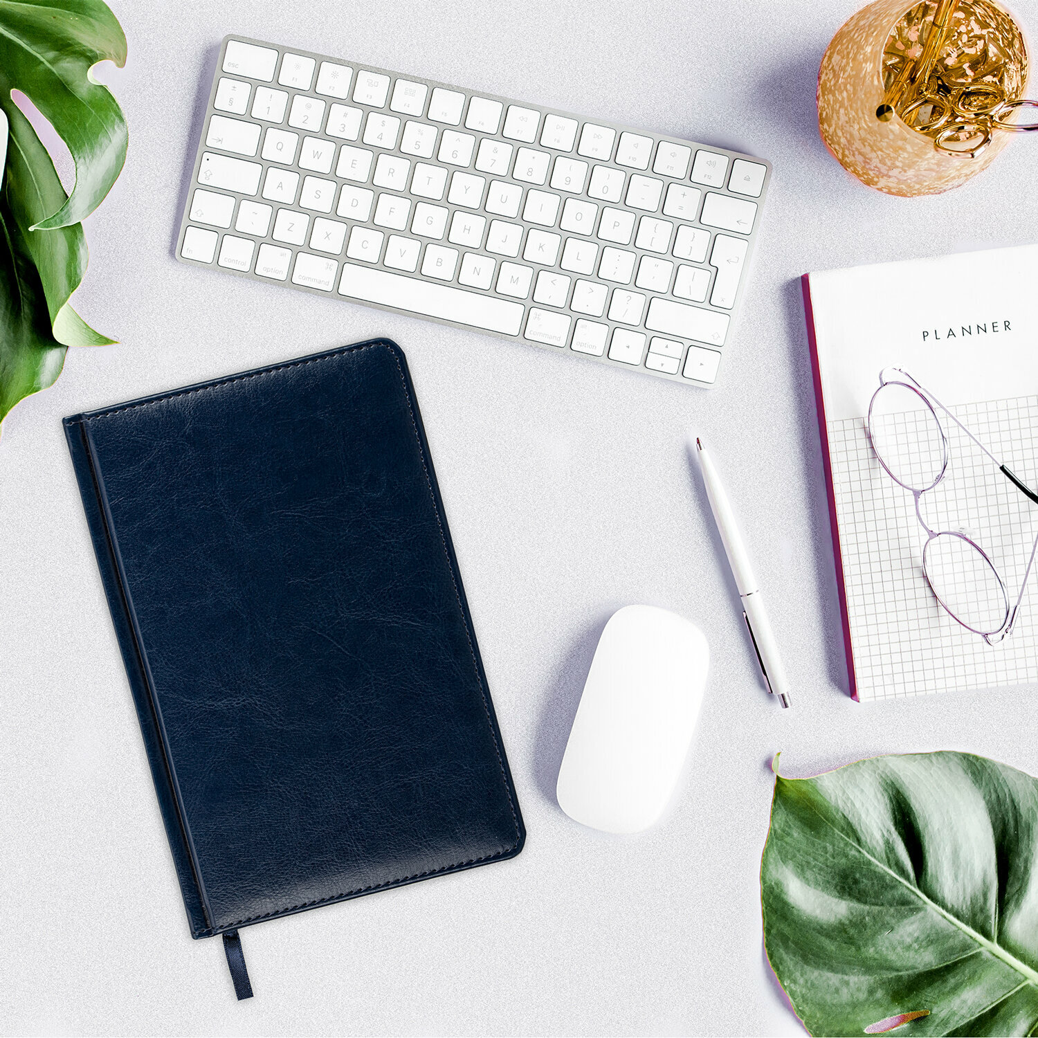 Ежедневник-планер (планинг) / записная книжка / блокнот недатированный формат А5 138х213мм под гладкую кожу, Brauberg Imperial, 160 листов, кремовый блок, темно-синий