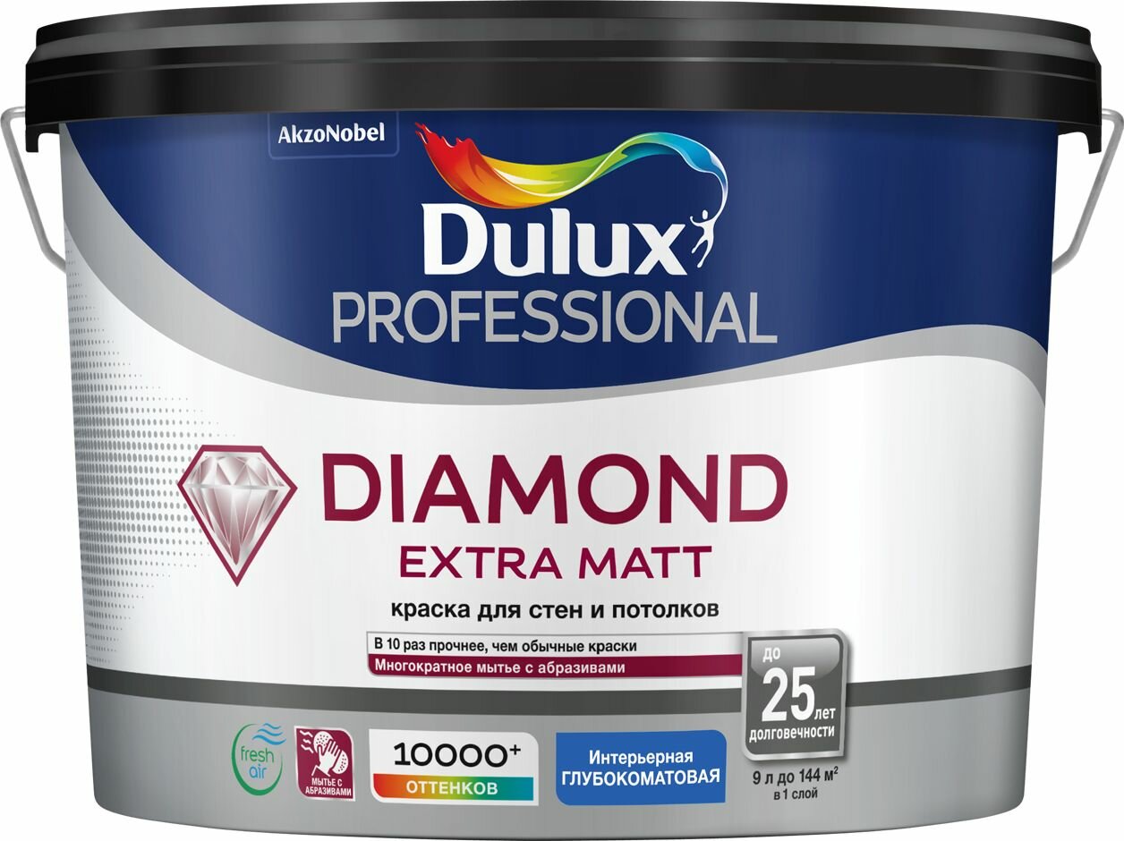 Краска Dulux Professional Diamond Extra Matt глубокоматовая BC 9 л информация: