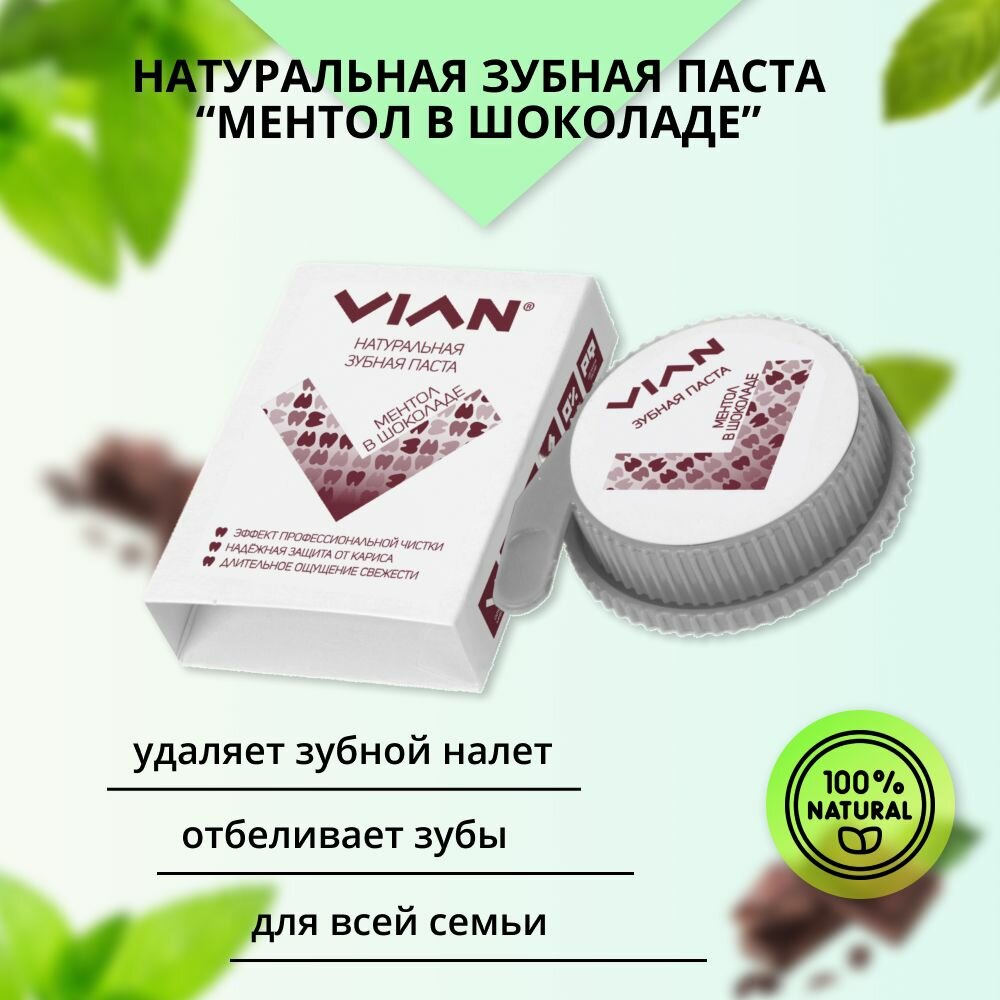 Зубная паста Vian концентрированная ментол В шоколаде, Натуральная зубная паста отбеливающая информация: