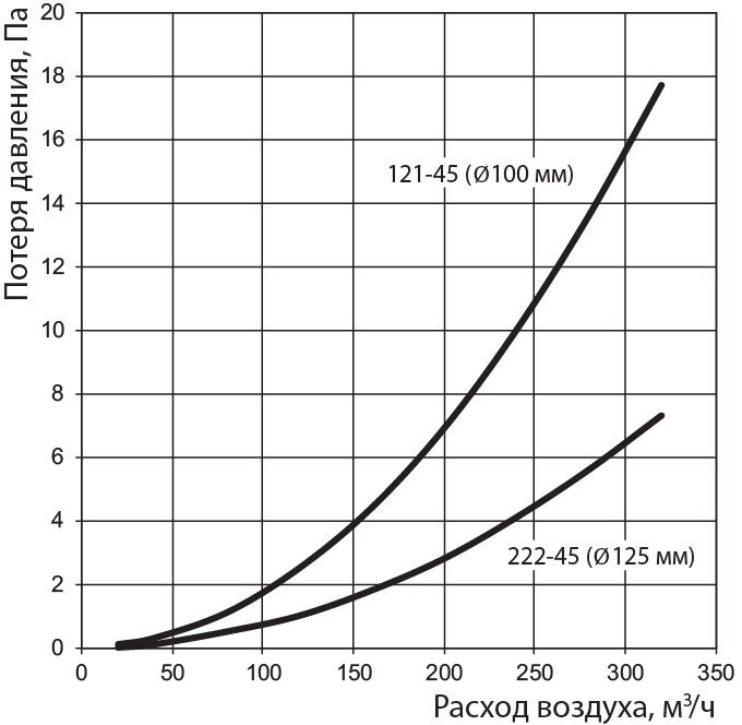 | Угол отвода | 45° |