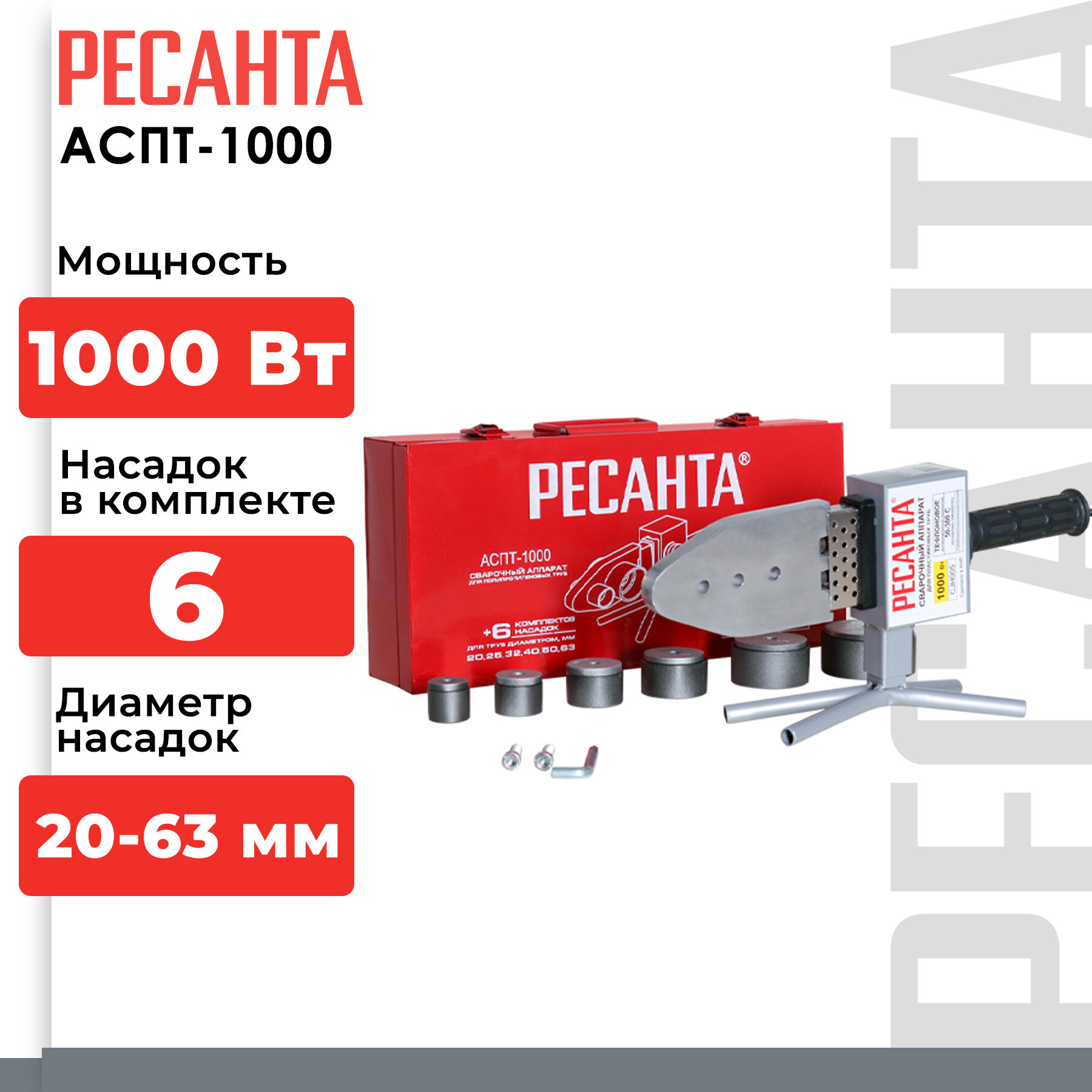 Аппарат для сварки пластиковых труб РЕСАНТА АСПТ-1000, 6 насадок