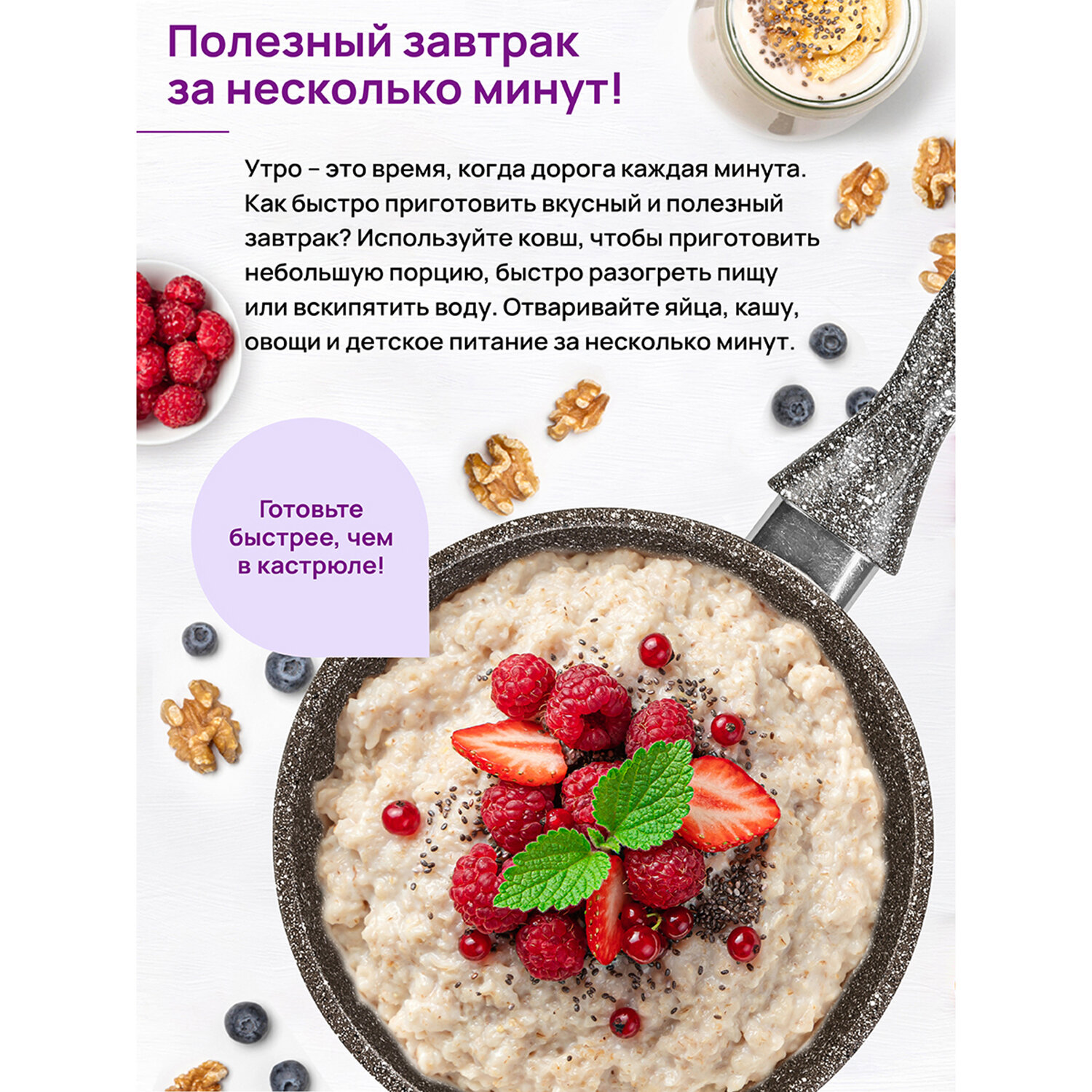 Ковш 1,5 л Elan Gallery гармония вкуса Коричневый опал ковшик кухонный с крышкой толстостенный из литого алюминия с двухслойным антипригарным покрытием с несъемной ручкой Идеальный подарок на Новый год Рождество День Рождения и 8 марта