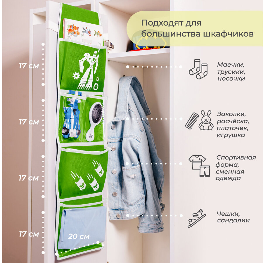 10 цен на Кармашки в садик для детского шкафчика 85х20 см, Робот (зеленый)